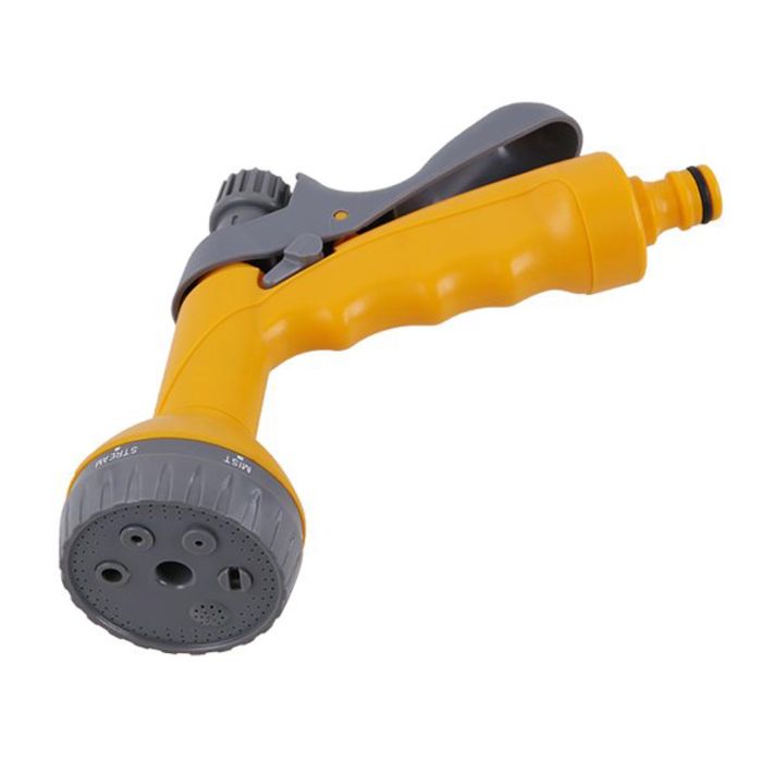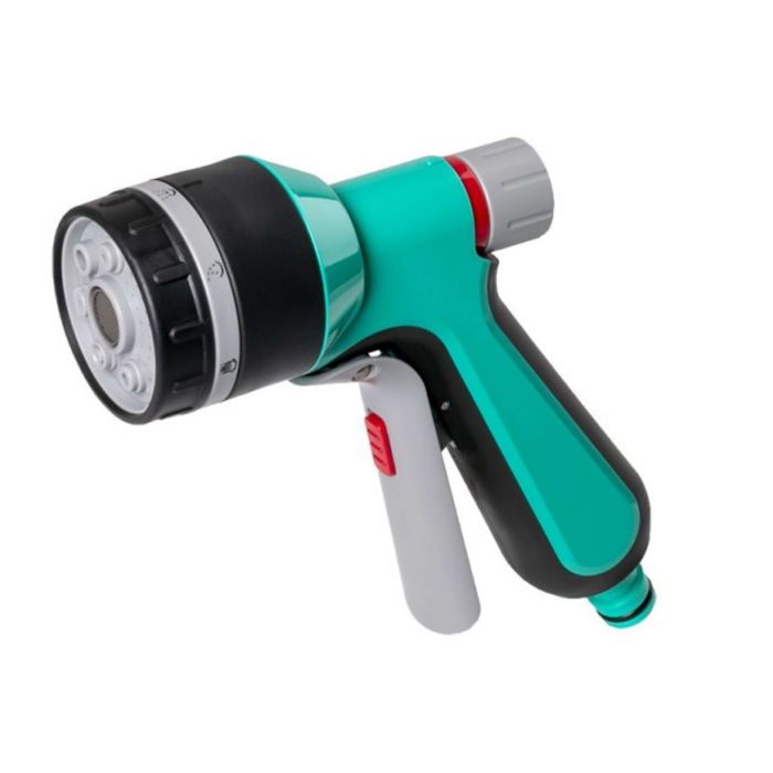Este modelul clasic, dotat cu un tragaci. Apesi pentru a porni apa, eliberezi pentru a o opri. Avantajul major al acestui tip de pistol de irigat este capul rotativ (cadranul) care iti permite sa schimbi stilul de stropire. In general, poti alterna intre mai multe moduri: