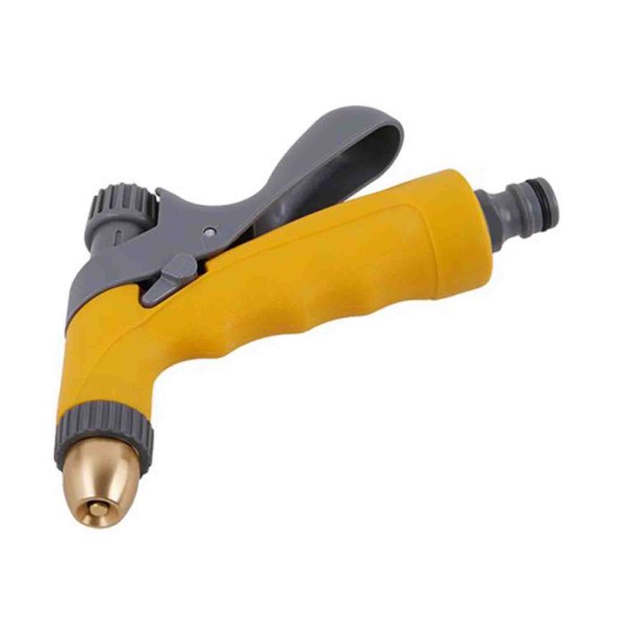 Pistoalele din plastic sunt o varianta foarte accesibila si extrem de usoara. Daca ai de udat o gradina mare si deja esti obosit dupa ce ai folosit o masina de tuns iarba, un pistol usor este o idee buna pentru incheieturile tale. Dezavantajul? Plasticul tinde sa se degradeze daca este lasat saptamani intregi in soare arzator si se poate crapa daca ingheata iarna cu apa in el.
